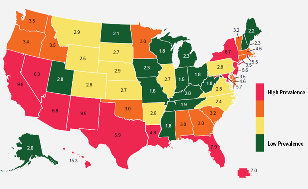 Pterygium affects millions of people in the United States, with particularly high prevalence in high‑sun, low‑latitude regions such as the Southwest, Gulf Coast, and Southeast, and other high‑UV regions worldwide.